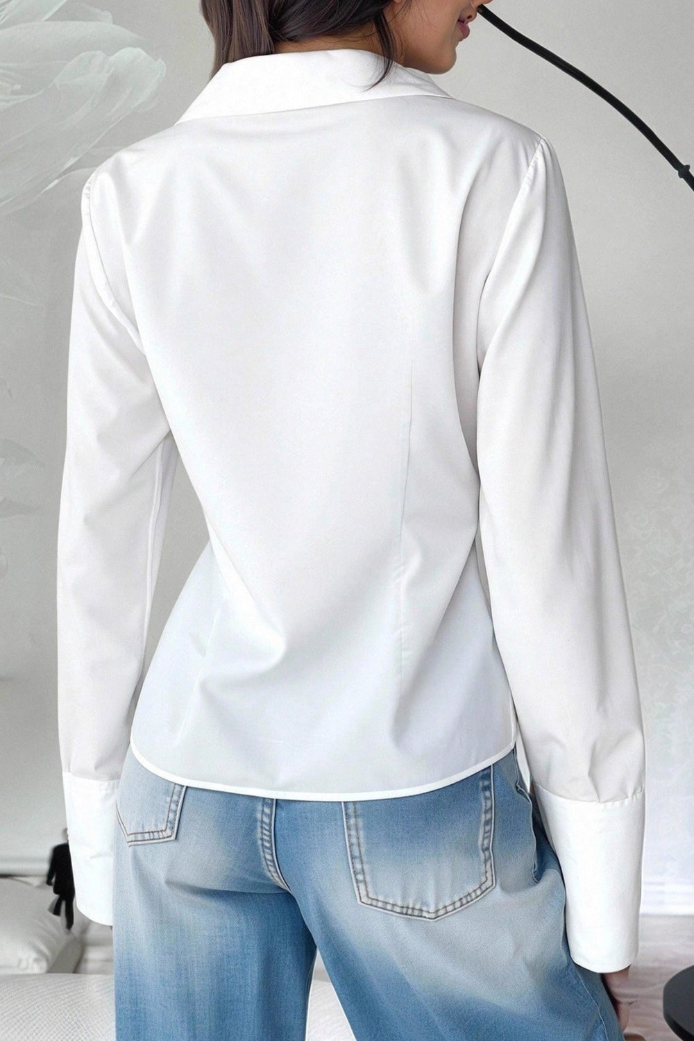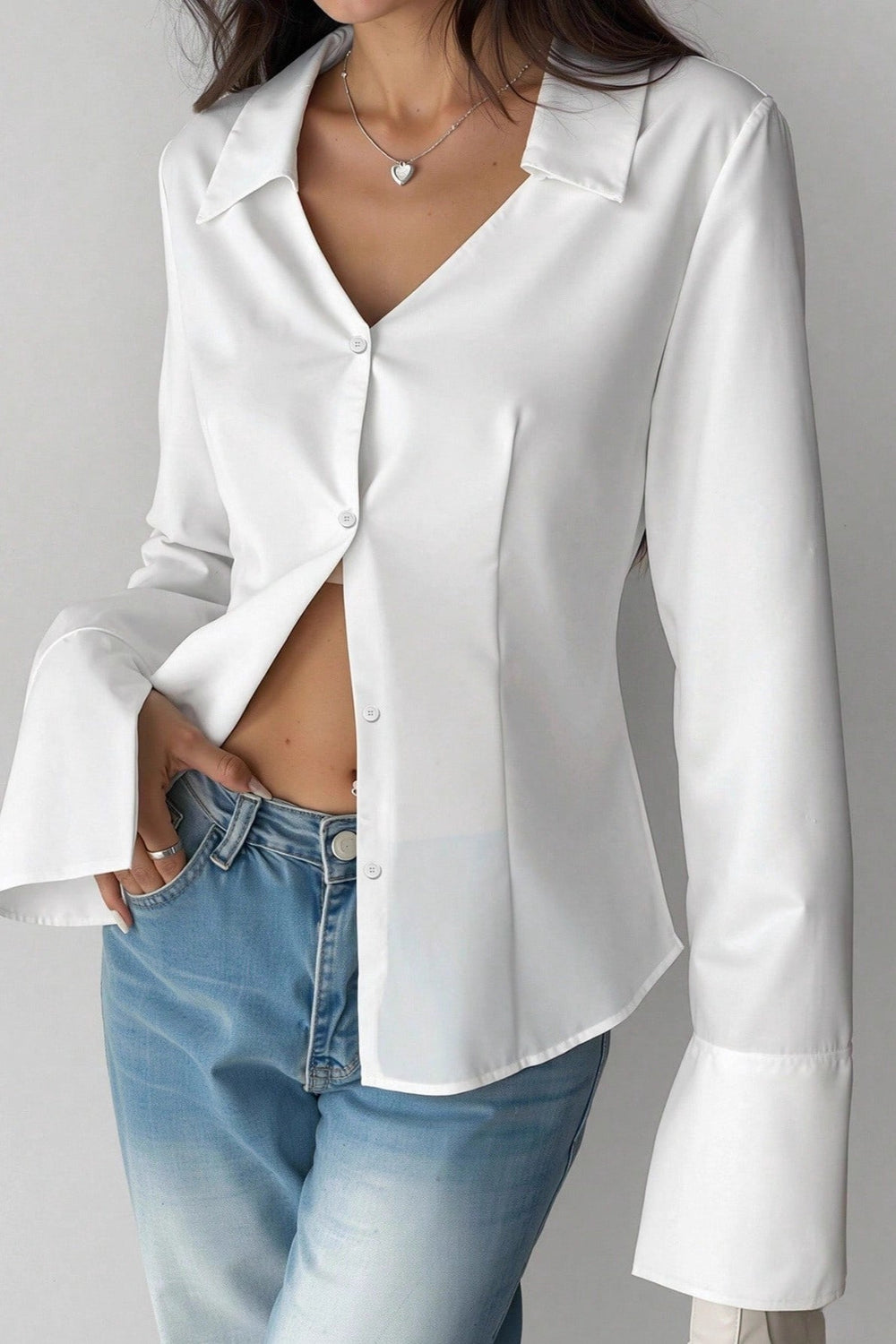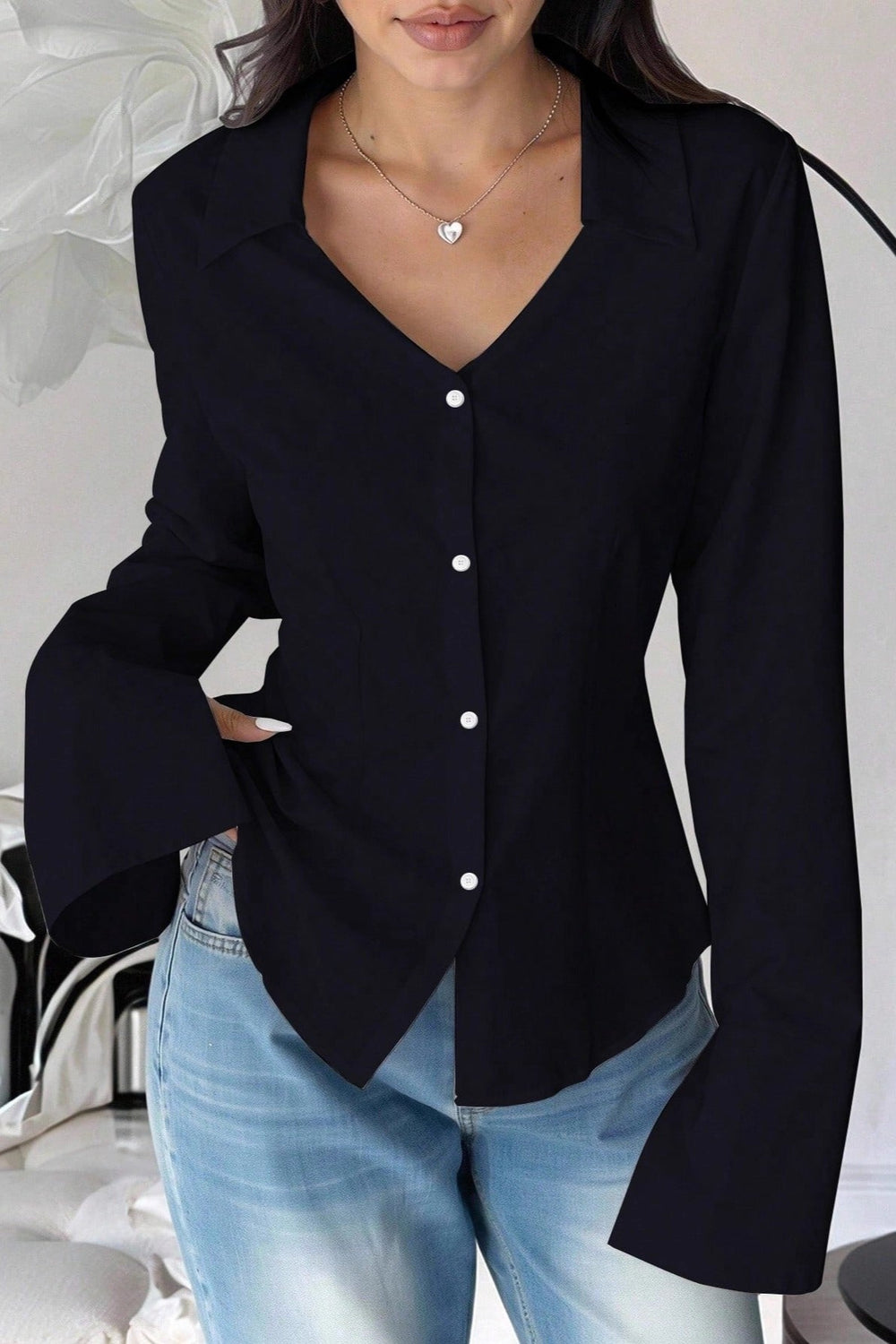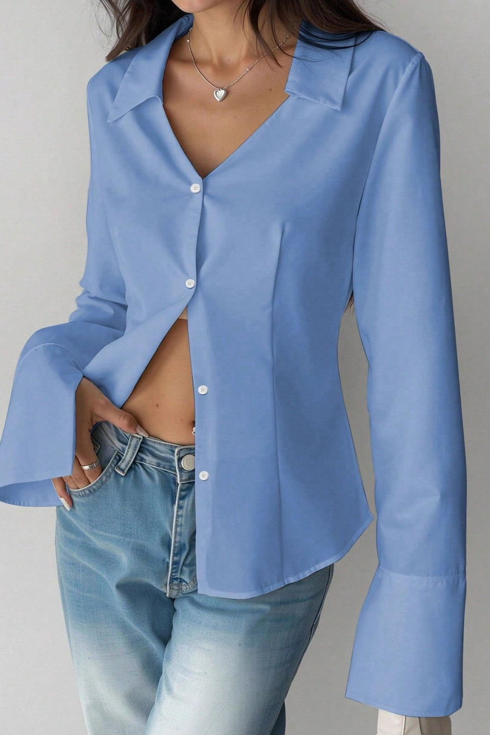 Slim Fit Flare Sleeve V Neck Blouse