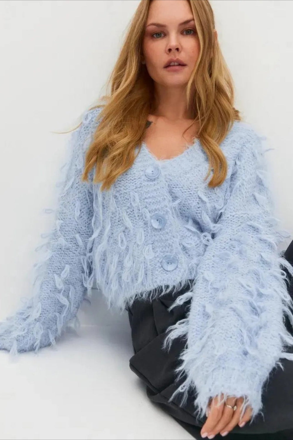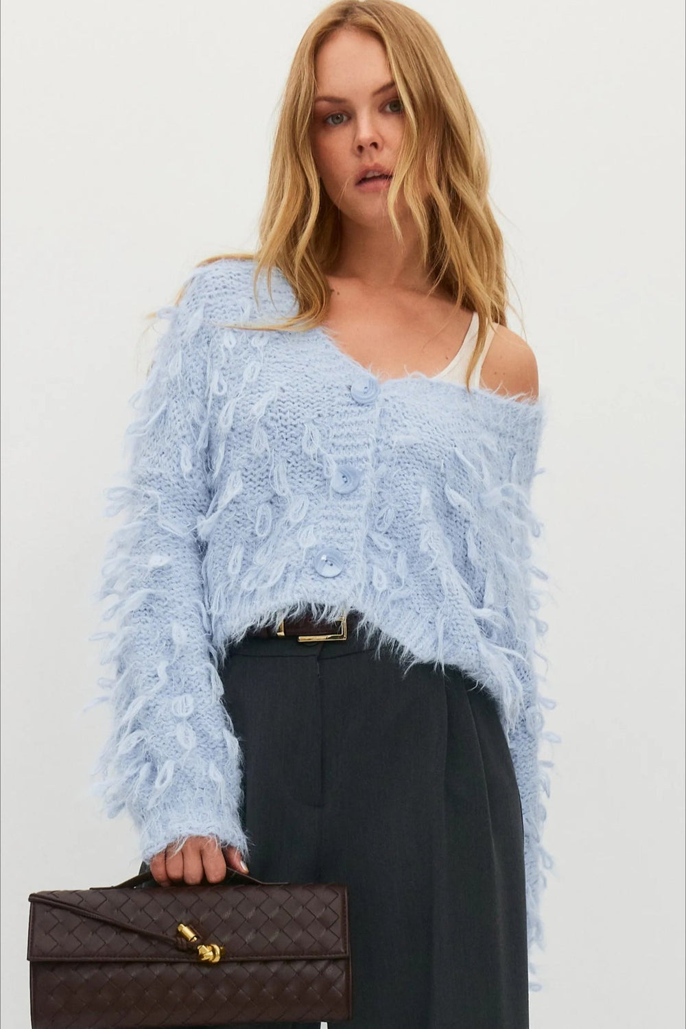 • Fit: Loose Fit • Neckline: V-Neck • Sleeve Type: Raglan Sleeve • Sleeve Length: Long Sleeve • Details: Tassels, Buttons, Ribbed • Composition: Acrylic, Polyester