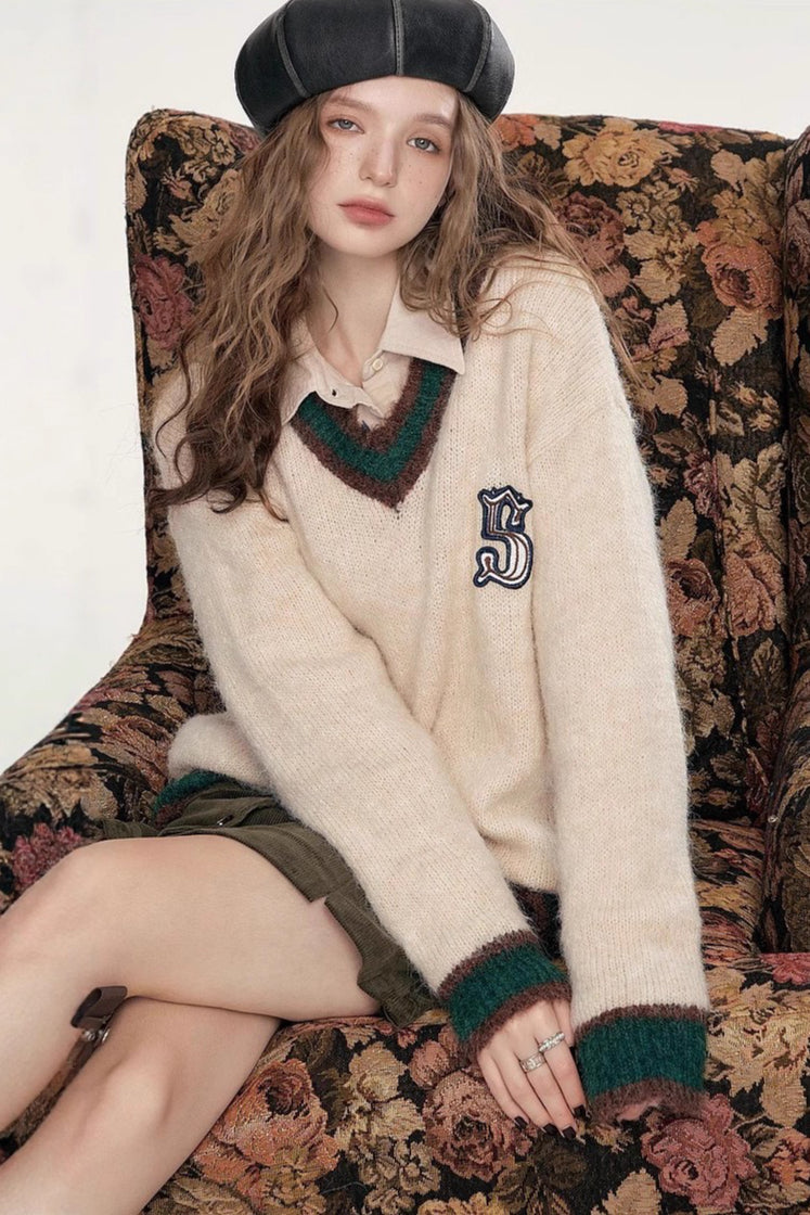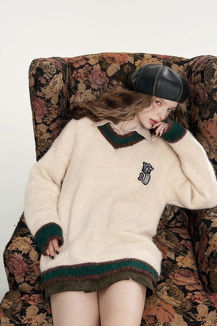 Soft Mohair V Neck Pullover Sweater