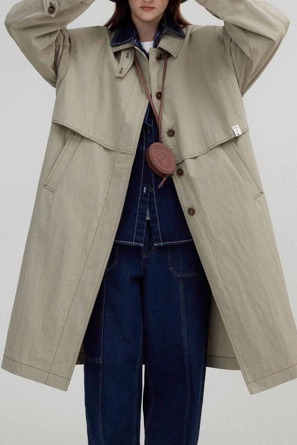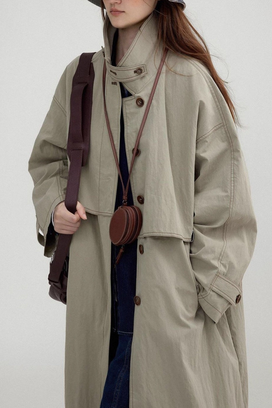 Vintage Stand Collar Wash Long Overcoat