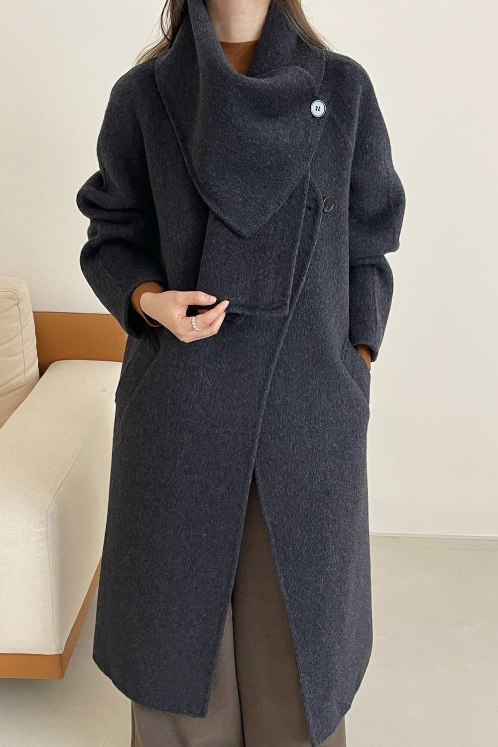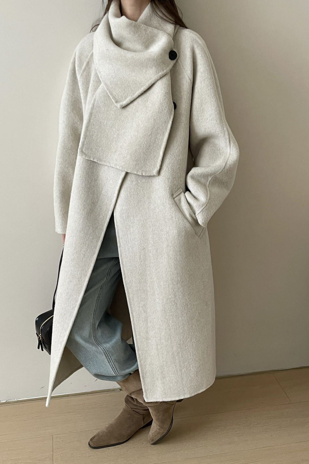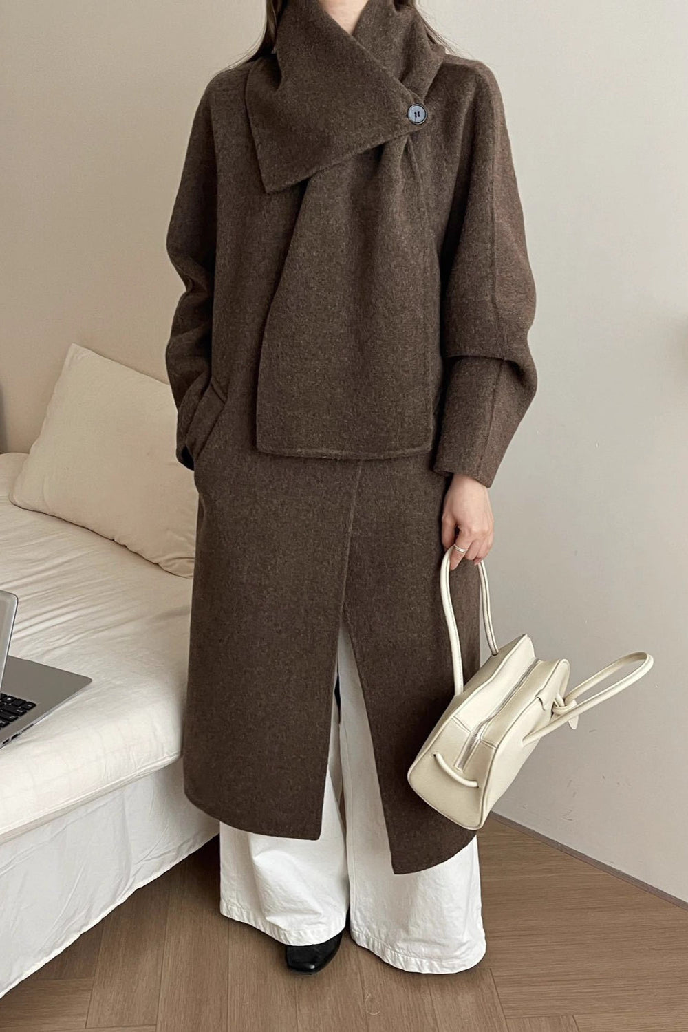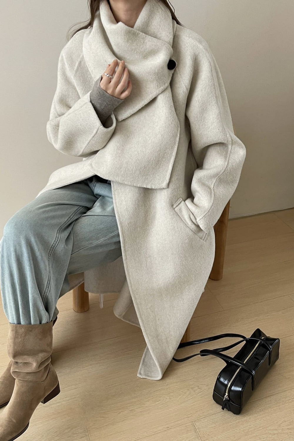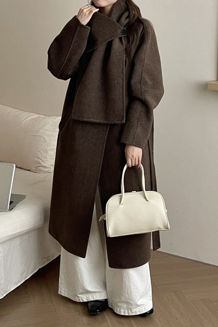• Neckline: Scarf Collar • Sleeve Length: Long Sleeve • Sleeve Type: Regular sleeve • Composition: Wool