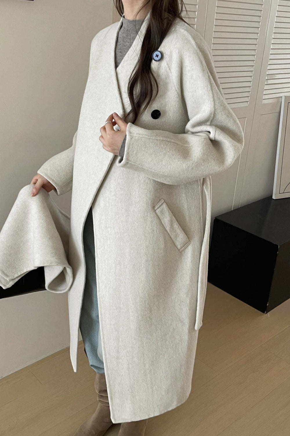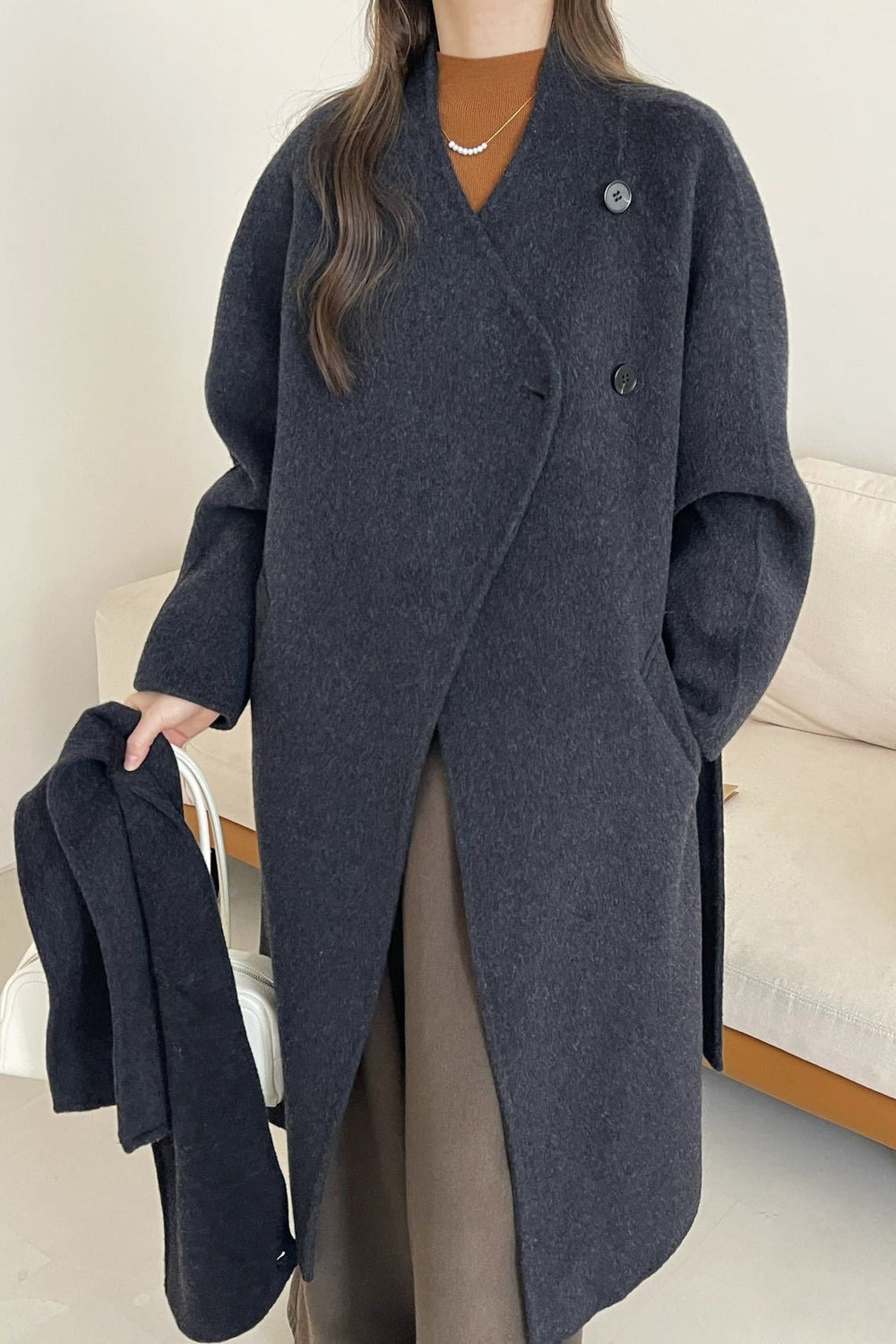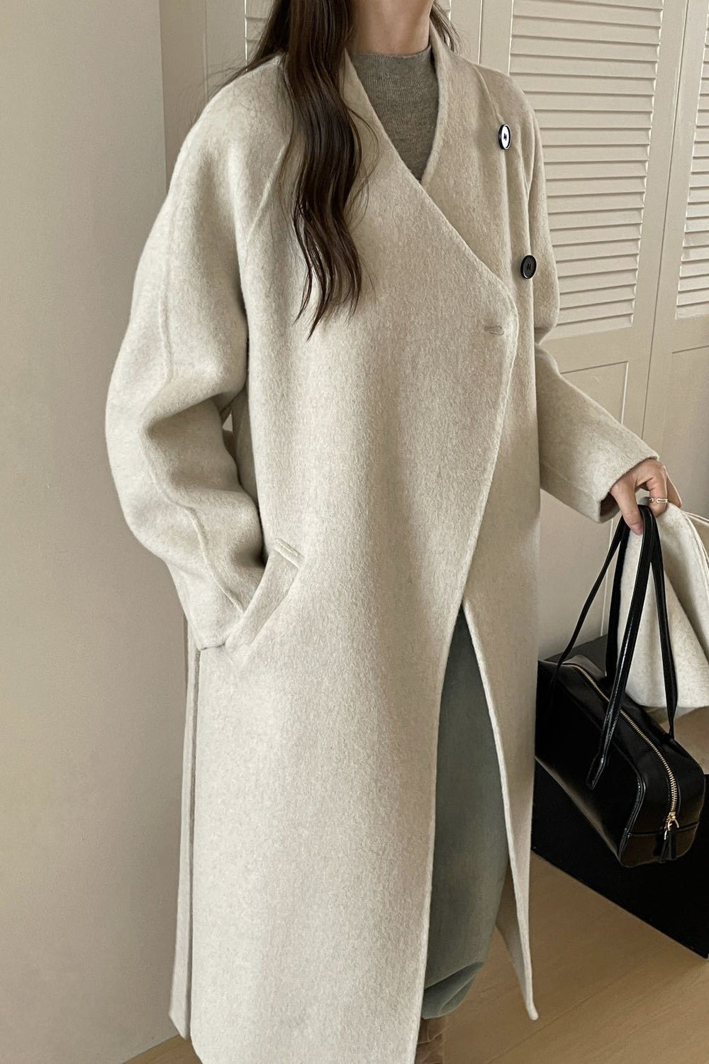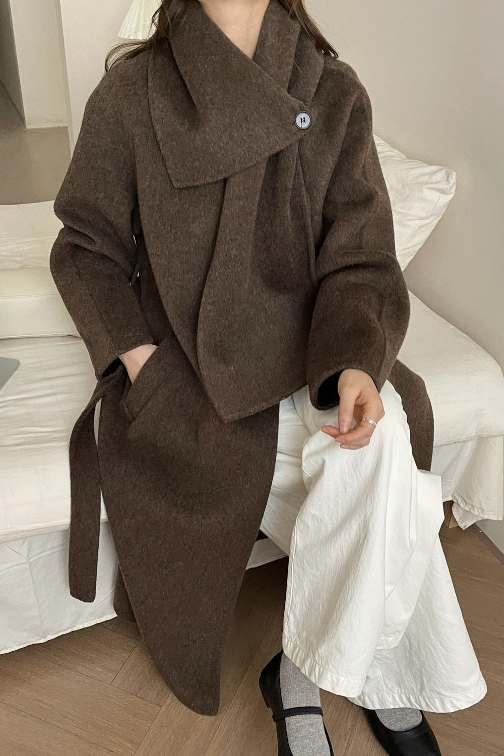 • Neckline: Scarf Collar • Sleeve Length: Long Sleeve • Sleeve Type: Regular sleeve • Composition: Wool