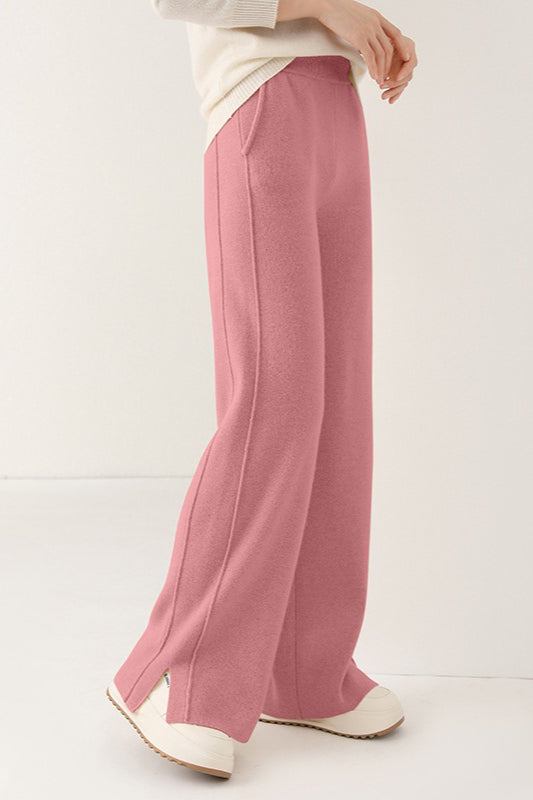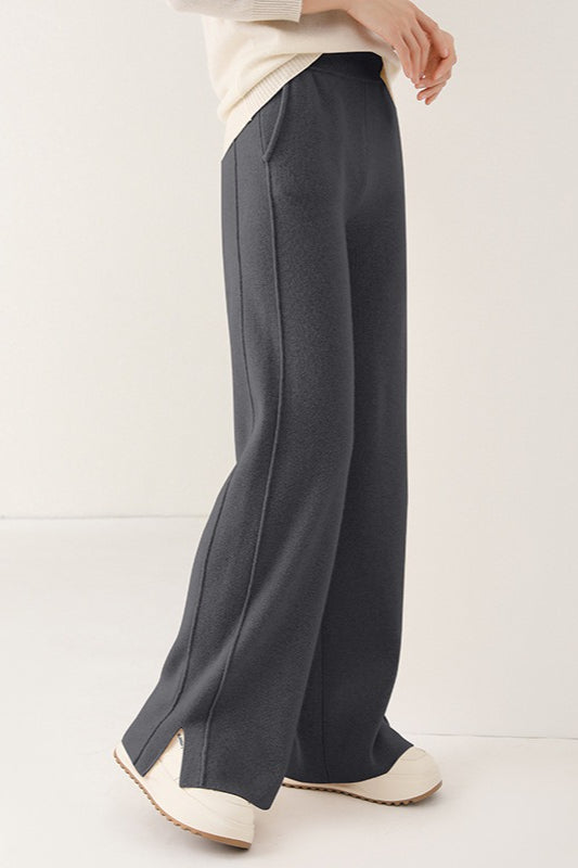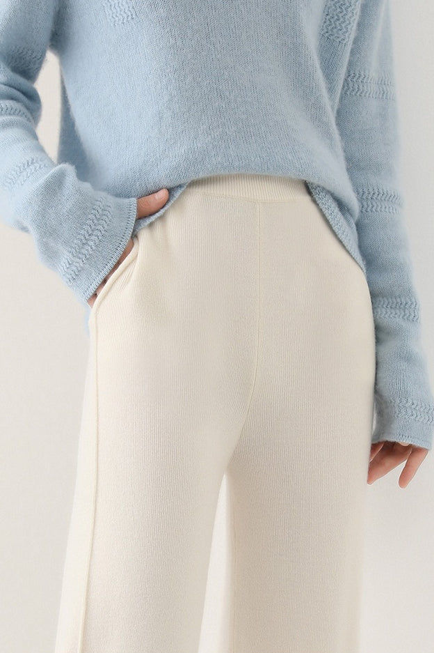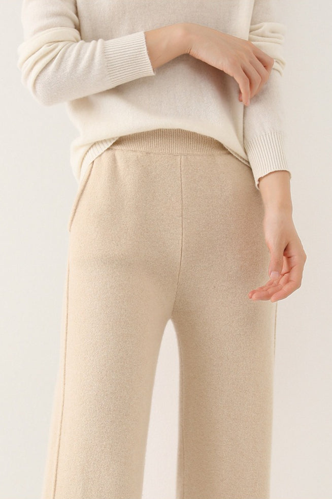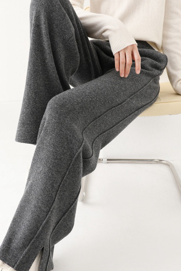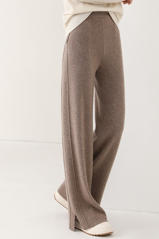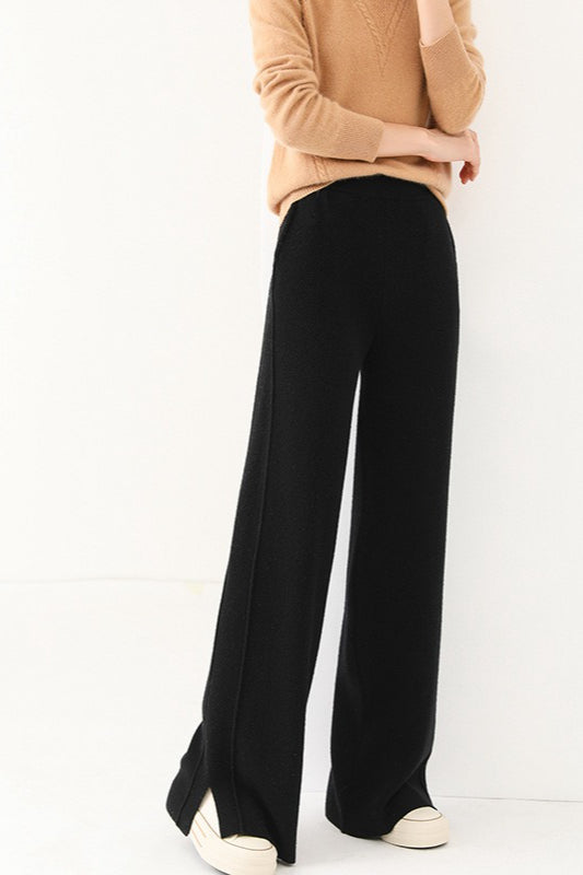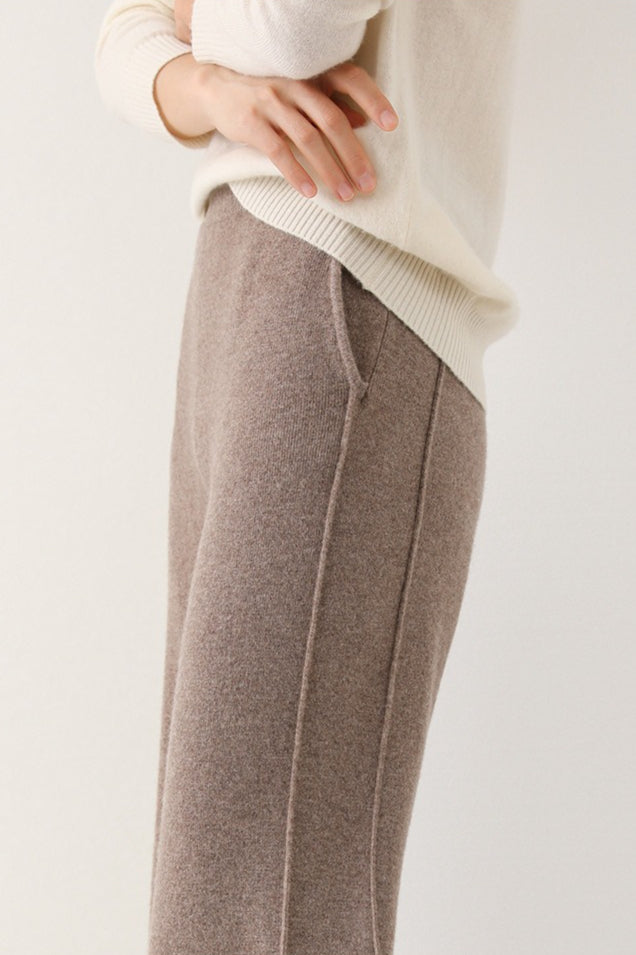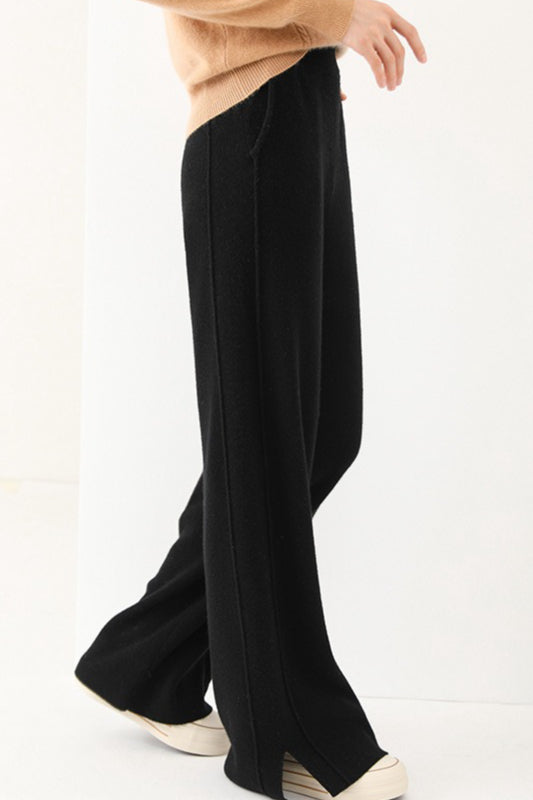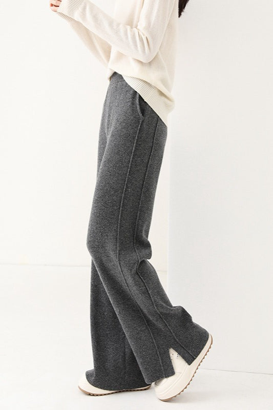 • Waist Type: Elastic Waist • Clothing Type: Straight Pants • Composition: Wool • Details: Solid Color